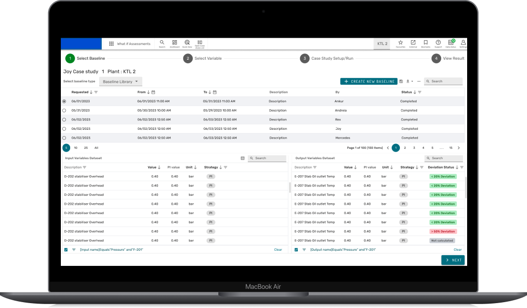 Looking at the final product, the What-if Scenario workflow feels both intuitive and robust , a space where engineers can explore complex simulations without losing their mental thread. What began as a challenge to make digital twin experimentation approachable evolved into a system that mirrors users’ reasoning, not just their workflows. The clean split views, tabulated data, and interactive 2D plant map give users confidence that every input and output is traceable.