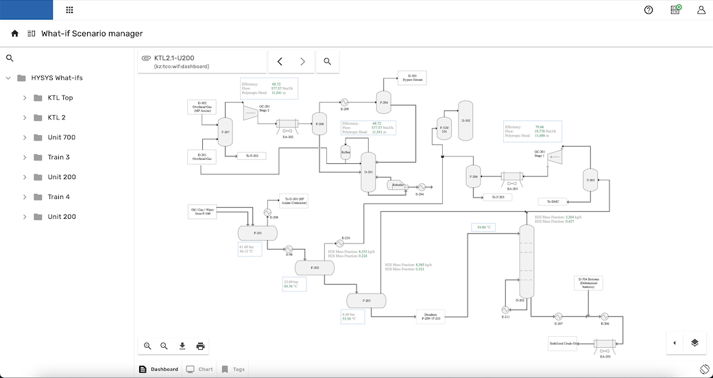 A What-If Scenario allows users to alter a parameter — such as temperature, production rate, or maintenance schedule — and immediately see projected outcomes.